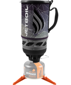 Blistering boil times come standard on the Flash personal cooking system, the ultimate camping stove for preparing coffee, soup, or dehydrated meals on the trail. Optimized for efficiency, the Flash boils water in a lightning-quick 100 seconds, making it the fastest Jetboil ever. Jetboil’s 1-liter FluxRing cooking cup with insulating cozy makes boiling water—and keeping it warm—a breeze. Start heating instantly with the convenient, reliable pushbutton igniter, and verify that the water’s ready with the thermochromatic color-change heat indicator. Compatible Jetboil accessories, such as a coffee press, hanging kit, pot support, skillet, FluxRing cooking pot, and utensils make this a necessity for your next backpacking adventure. Includes fuel canister stabilizer; bottom cup doubles as a measuring cup and a bowl; easy to pack and carry at only 13.1 ounces.